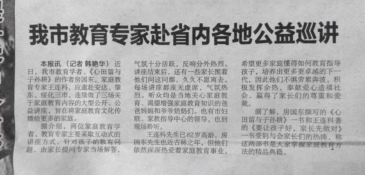 由于我出版了一部当代传世家训《心田留与子孙耕》,引起了一些社会团体和个人对我的关注。因此,使我有机会更多接触家长、更多听到家长们的呼声、更多感受到家长们的困惑。开始认识到,中国要有好孩子,当务之急是提升家长。2017末,齐齐哈尔市外国语学校董事长孙洪光同志,因为看到我的书(《心田留与子孙耕》),跟我探讨家庭教育方面的问题,于是,力邀我到外国语学校做家校合作管理委员会主任,兼做“家长学校”校长。“周五家长课堂”在我手举办46期。当我得以系统持续地在一个相对稳定的“家长课堂”传播家庭教育理念的时候,相较于那种随机性、游走式“家庭教育”传播方式,我感受到了“家长课堂”应该是家庭教育不可或缺的选项。