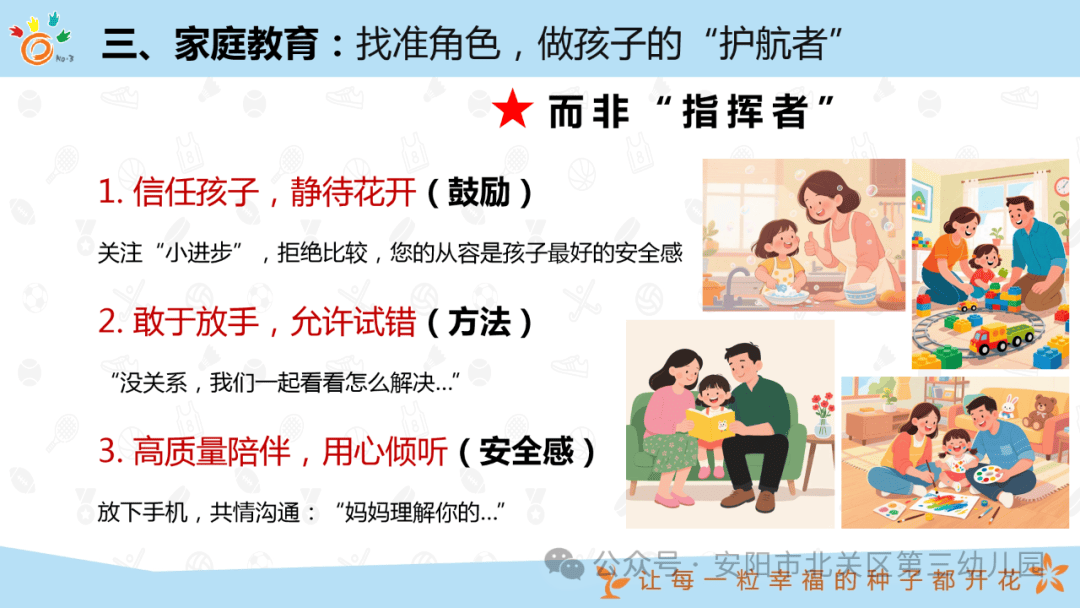 3.家园共育:构建家园沟通体系,为家长提供持续的专业指导与支持。