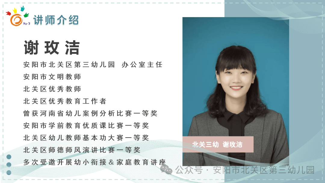 为有效缓解家长焦虑,凝聚家园共育合力,帮助幼儿实现从幼儿园到小学的平稳过渡,安阳市北关区第三幼儿园于2025年10月22日成功举办了以“科学做好幼小衔接,助力孩子平稳迈入小学”为主题的专题讲座。