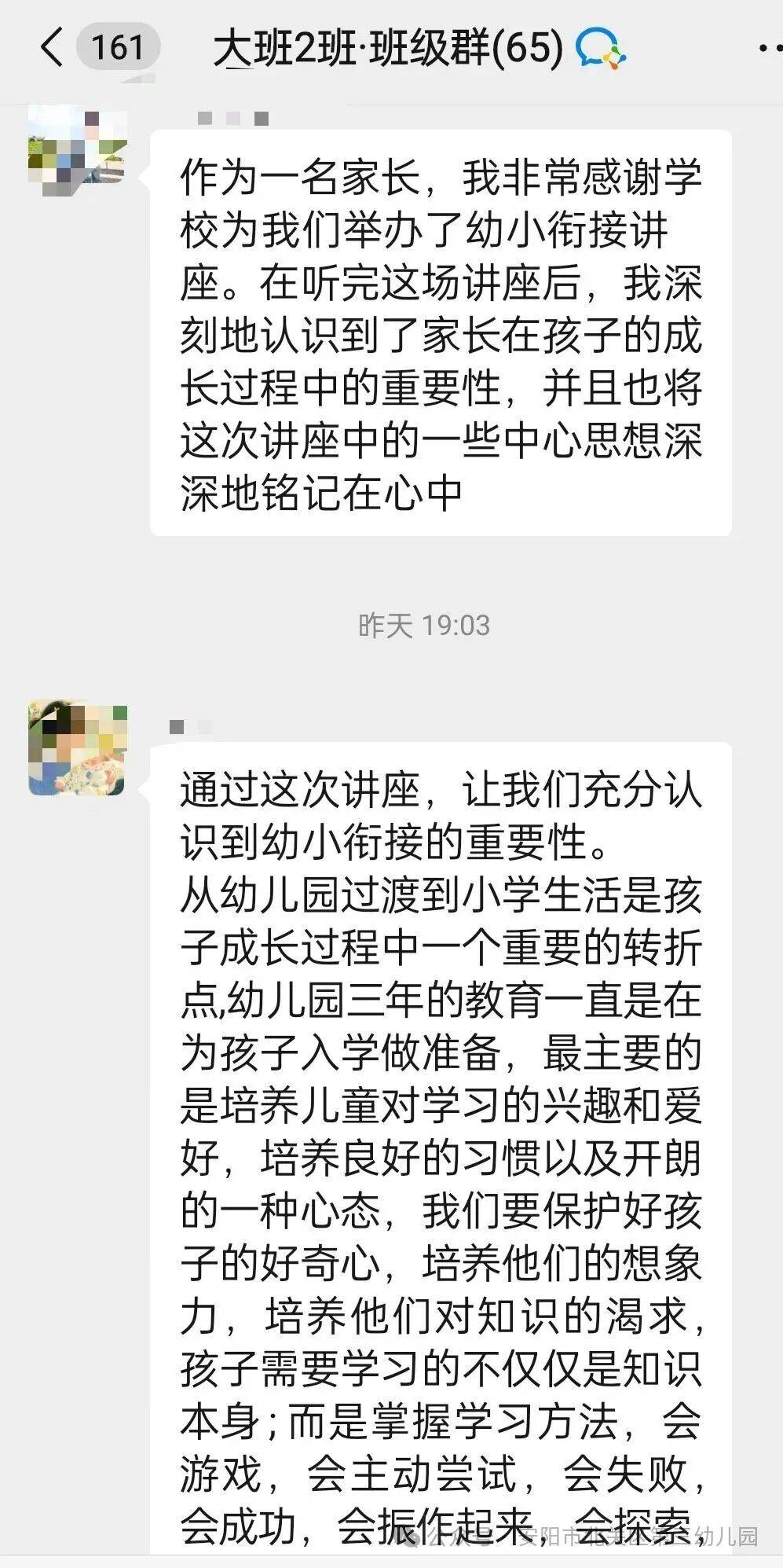 讲座明确了家长在衔接过程中的“支持者”角色,建议家长信任孩子、敢于放手、提供高质量陪伴。同时,详细介绍了我园在推进科学衔接方面采取的多项措施。