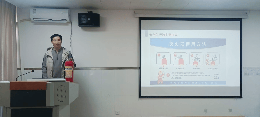 本次活动分为理论培训、技能实操和疏散演练三个环节。在理论培训环节,保卫科科长程涛结合火灾案例,深入浅出地讲解了火灾预防、初起扑救及火场逃生等核心知识。理论培训结束后,师生在专业指导下,踊跃参与了干粉灭火器实战演练,掌握了消防器材的正确使用方法。