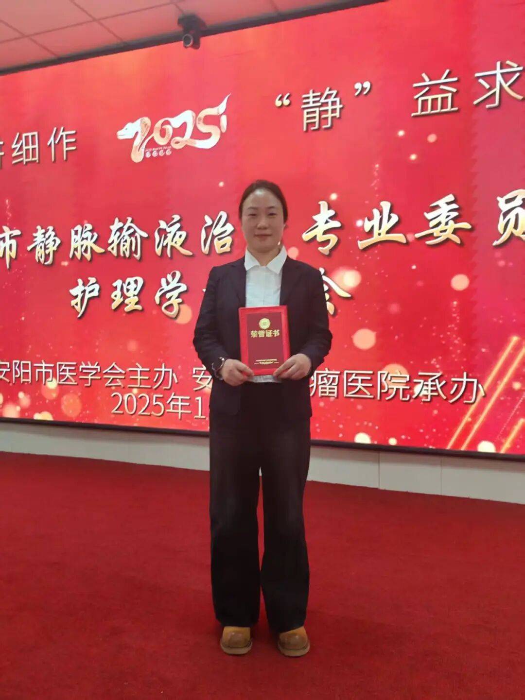 2025年11月6日,由安阳市医学会主办、安阳市肿瘤医院承办的静脉输液治疗护理专业竞赛圆满落幕,殷都区人民医院肿瘤消化科护士吝文佳凭借规范娴熟的操作技能、清晰严谨的临床思维,在众多参赛选手中脱颖而出,荣获竞赛三等奖。