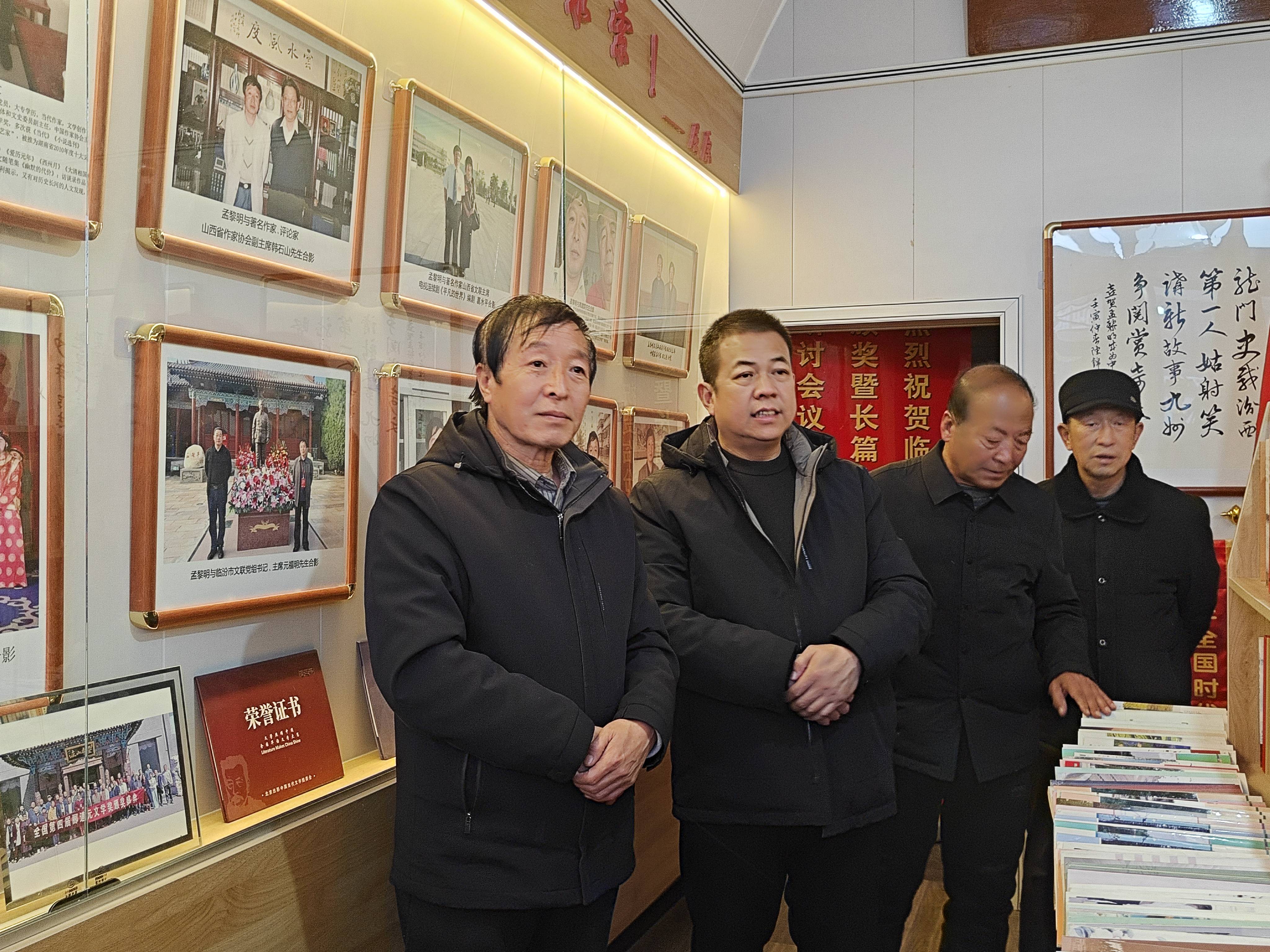 孟黎明文学馆馆长、郦道元文学院山西创作基地主任孟黎明对郦道元文学院的支持表示感谢,并介绍了文学馆的建设理念与发展概况。林膑院长在孟黎明文学馆馆长的陪同下,实地参观了文学馆的展厅、藏书区等区域。参观过程中,林膑详细听取了孟黎明先生的创作历程、作品特色介绍,对其扎根本土、关注时代、体恤民情的创作精神给予高度评价,对孟黎明文学馆在传承本土文化、培育文学新人方面所做的工作表示肯定。他表示,未来将以创作基地为纽带,加强与山西文学界的沟通协作,开展更多形式多样的文学交流、创作研讨活动,共同挖掘山西文化内涵,打造具有地域特色的文学精品。